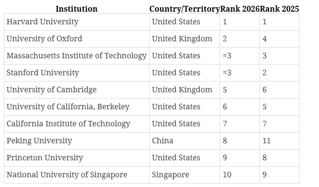 Massachusetts Institute of Technology (MIT) emerged as the most dominant institution globally, topping three subject rankings — Arts and Humanities, Business and Economics, and Social Sciences. The US secured first place in eight of the 11 subjects, while the UK led three, including Psychology, where the University of Cambridge reclaimed the top spot for the first time since 2022.